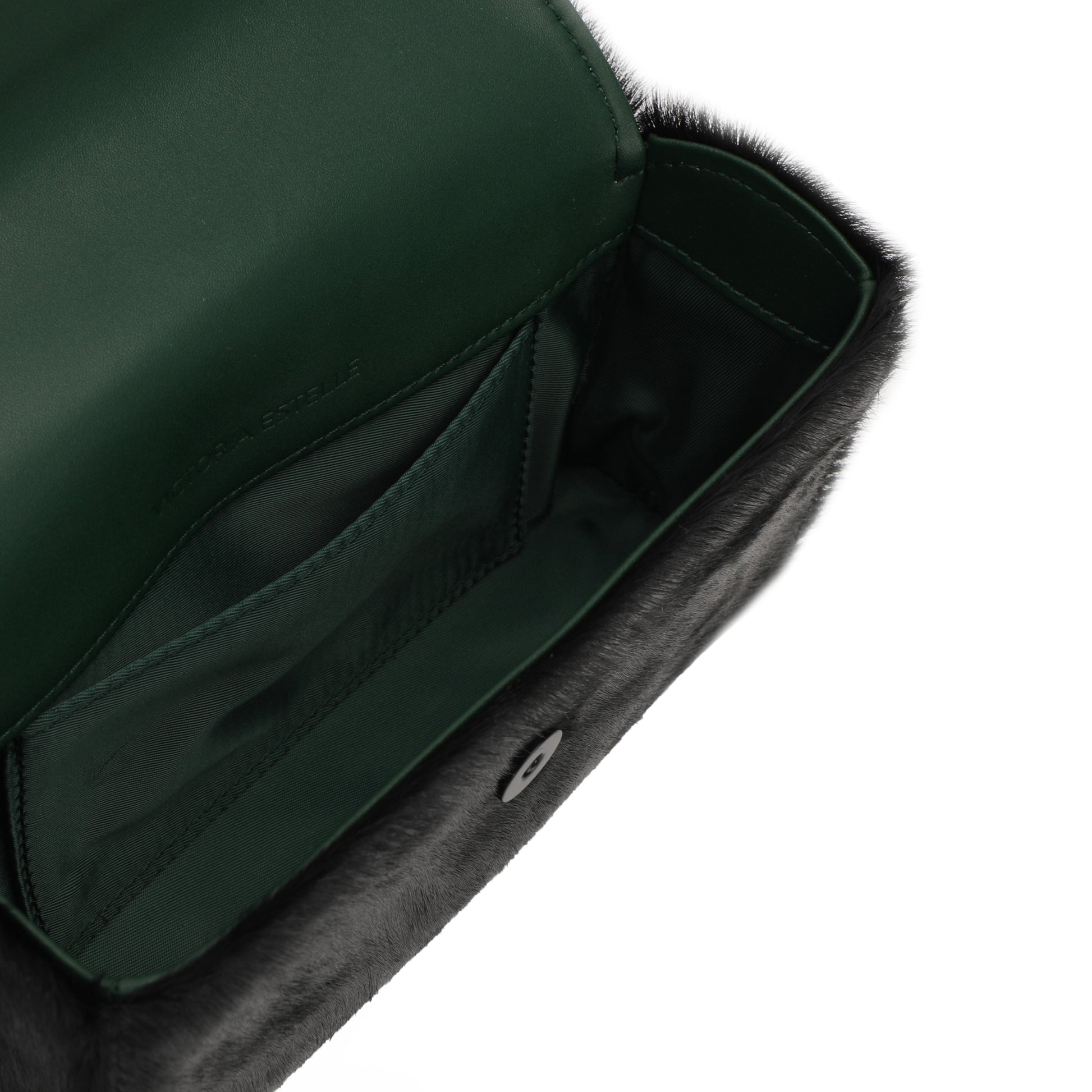 Crafted from premium cowhide leather, this bag features a luxurious emerald leather & polyester interior. The design includes an open interior pocket for added convenience, paired with a chic acrylic handle.