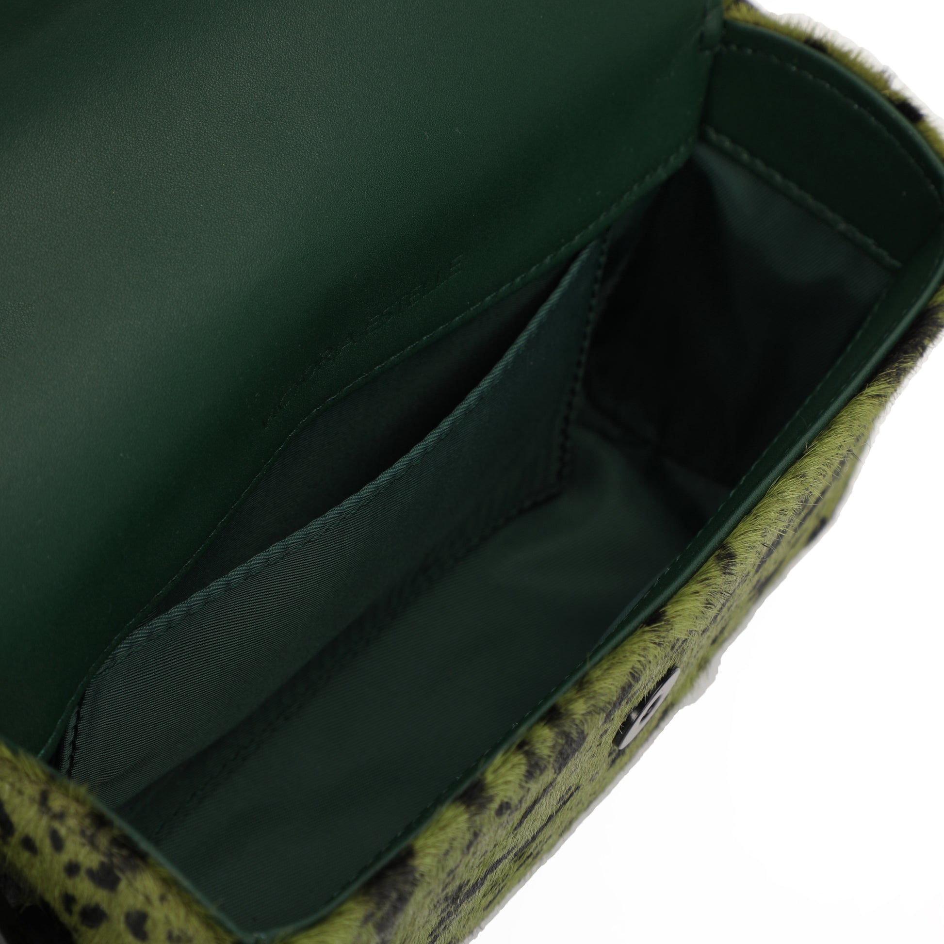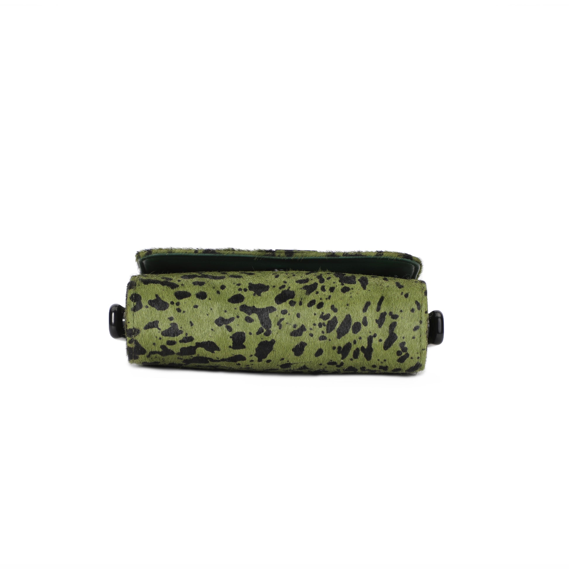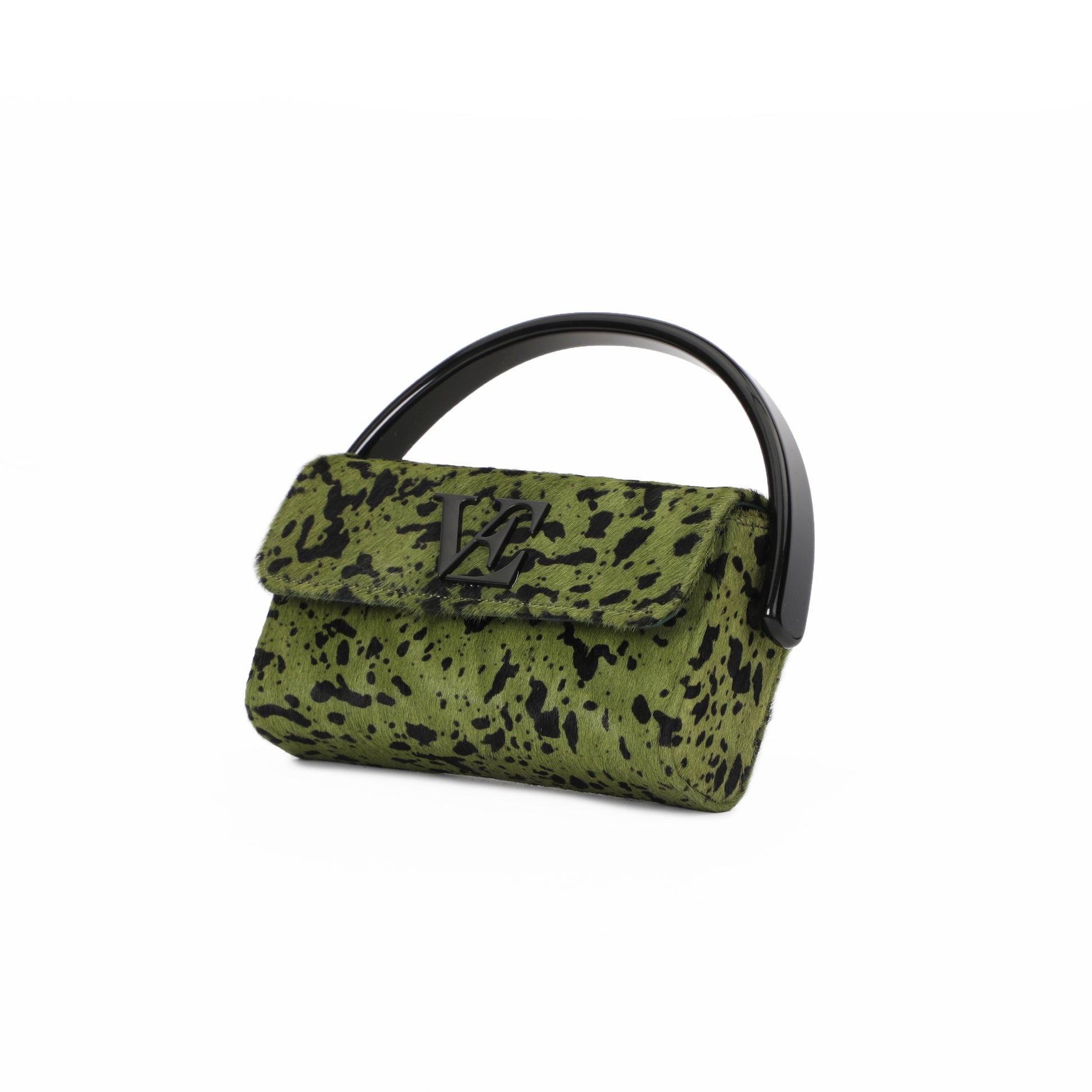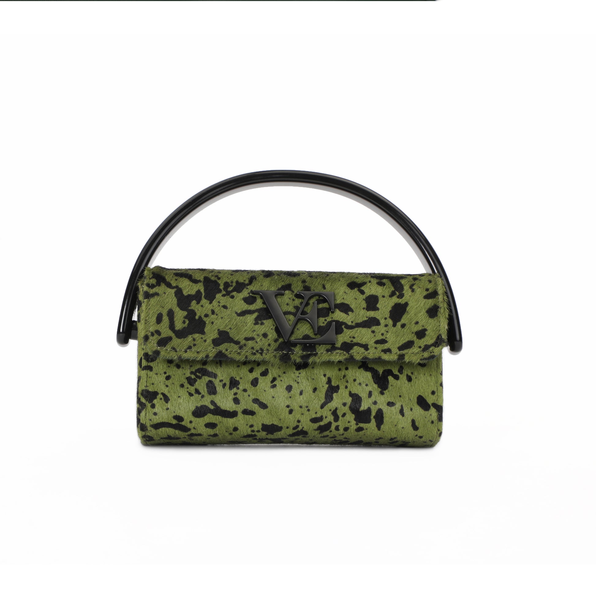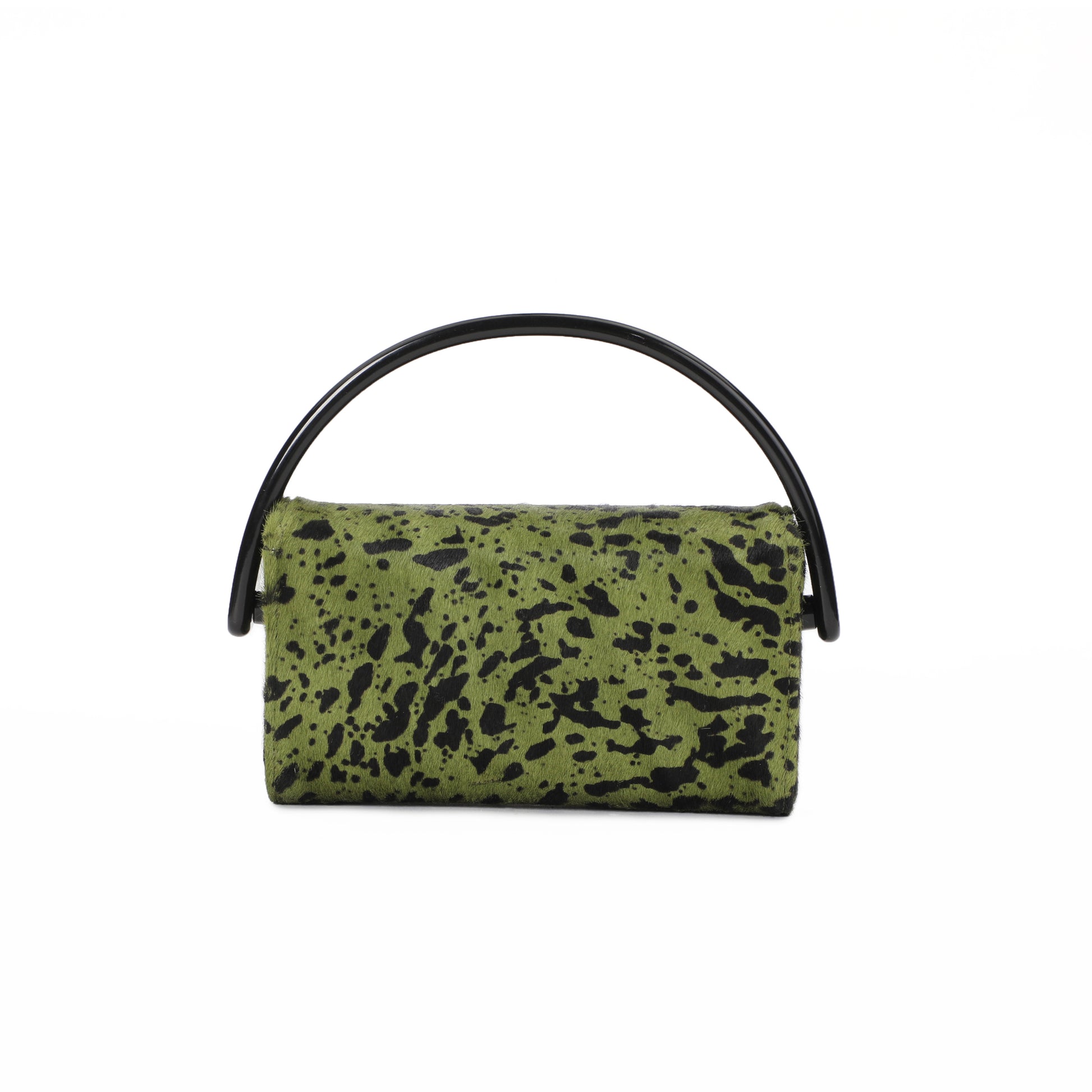 Crafted from premium cowhide leather, this bag features a luxurious emerald leather & polyester interior. The design includes an open interior pocket for added convenience, paired with a chic acrylic handle.